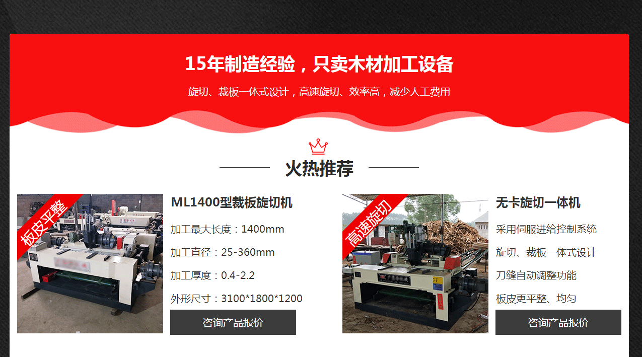 主营产品:旋切机,数控旋切机,高精端旋切一体机,打圆机,自动磨刀机