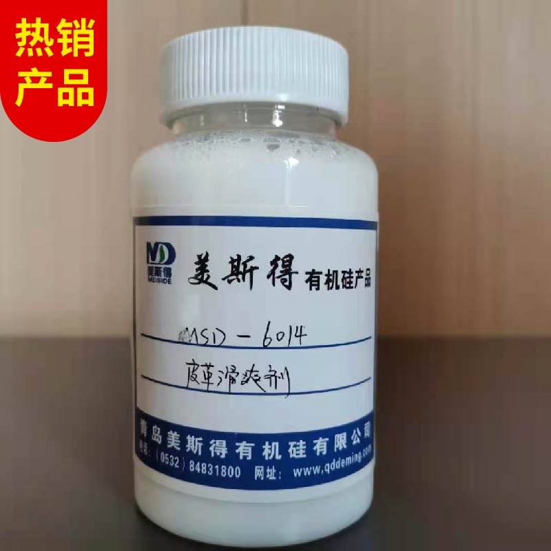 [用法用量]1、参考配方名称 用量滑爽剂 皮革滑爽剂 6~8光亮剂 硝化棉光亮剂(或蛋白光亮剂) 100~150水 400注:①与蛋白光亮匹配使用时要以甲醛、醋酸等化合物进行喷涂、固定。②本品系阴离子乳液,匹配使用应注意配伍性。2、操作工艺:采用上述比例,使体系均匀,然后分两次用喷枪或喷浆机喷到革面上。第1次喷涂后于室温下经2~4h自然风干或在烘房中60℃±10℃下烘30min,即获得滑爽光亮的革面,涂饰剂用量为35~70g/㎡(其中滑爽剂用量1.5~3g/㎡),当对亮度要求不高时,可单独采用本品进行滑爽处理,只需喷涂一次自然或烘房干燥即可,喷量1.5~3g/㎡。[注意事项]在贮存或使用过程中应防止与盐类等杂质接触,同时应严格考查匹配物的离子性,以免引起漂油及分层。[包装与贮运]包装:本品以50kg,200kg塑料桶包装;贮存:本品贮运时避免与酸碱盐类物质混合,贮存期限以常温下半年为准;运输 :按无毒非危险品贮运。