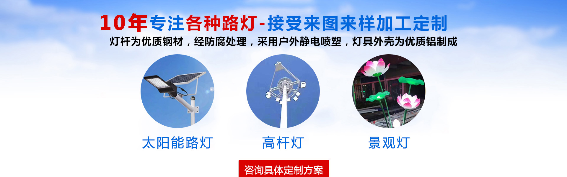 公司有280多人,其中技术人员16人、八大销售区域经理49人,生产员工200余人,拥有灯杆生产车间、压铸车间、锂电池生产车间、光源生产车间等10个车间,120多台专业生产设备,产品覆盖户外照明、景观亮化等工程领域。欢迎新老客户来电咨询,我们将竭诚为您服务